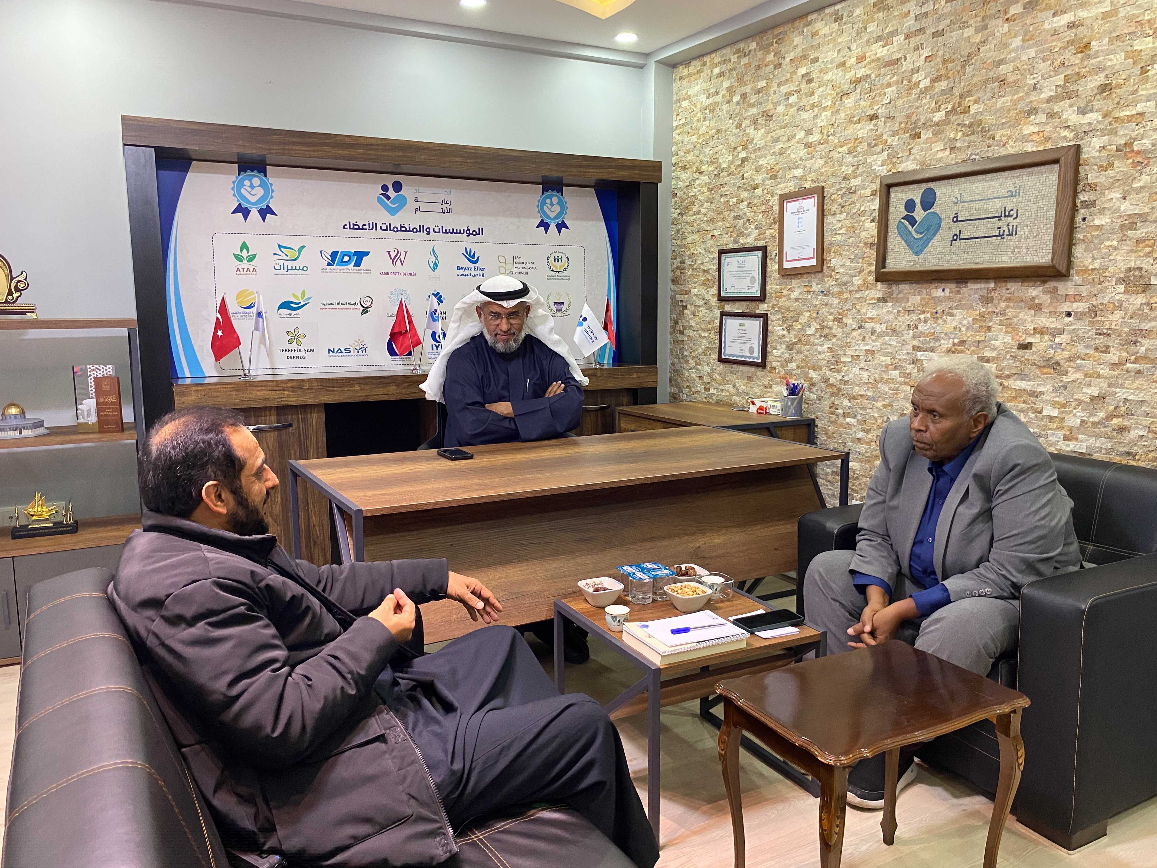 Yetimleri Koruma Federasyonu Genel Sekreteri Sayın Salah Ahmad Al-Jarallah, ISRA Derneği Sudan Genel Sekreteri Müh. Jaafar Ahmed Abdullah ile; Federasyon Yönetim Kurulu Başkan Yardımcısı Dr. Hayat Allah Ateed ve İcra Direktörü Müh. İhsan Arslan’ın katılımıyla bir görüşme gerçekleştirdi. Görüşmede tarafların çalışma alanları ve yetim bakımıyla ilgili öne çıkan programlar ele alındı.