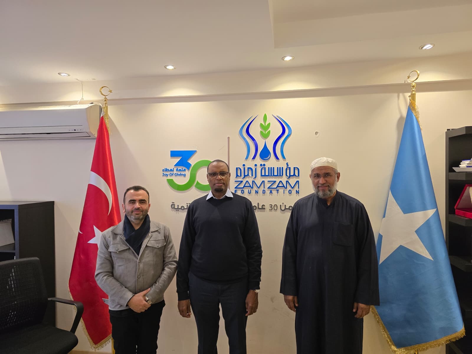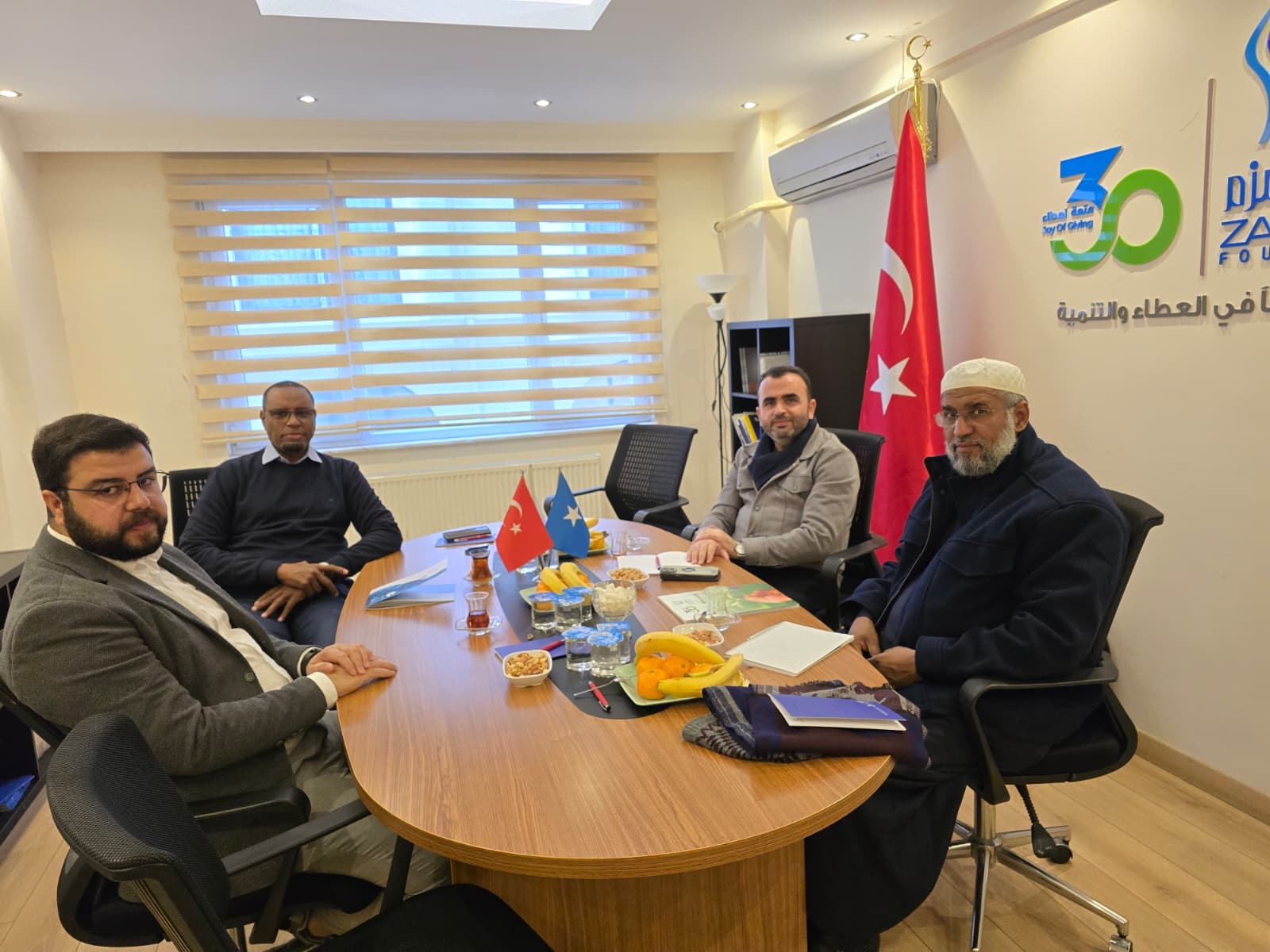 Yetimleri Koruma Federasyonu Genel Sekreteri Sayın Salah Al-Jarallah ile Zamzam Derneği Somali heyeti (Heyet Başkanı Sayın Shuaib Abdul Latif) arasında; Türkiye Ofisi Direktörü Murad Kodak ve Projeler Sorumlusu Sayın Abdulaziz Boz Bua’nın katılımıyla, ayrıca İcra Direktörü Müh. İhsan Arslan’ın iştirakiyle bir görüşme gerçekleştirildi. Görüşmede Zamzam’ın projeleri incelenmiş, Federasyonun çalışma alanları ve stratejik projeleri tanıtılmıştır.